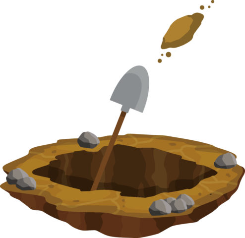 鉄塔基礎工事を簡単に説明すると、穴を掘って基礎を埋め、再び穴を塞ぐというイメージ。